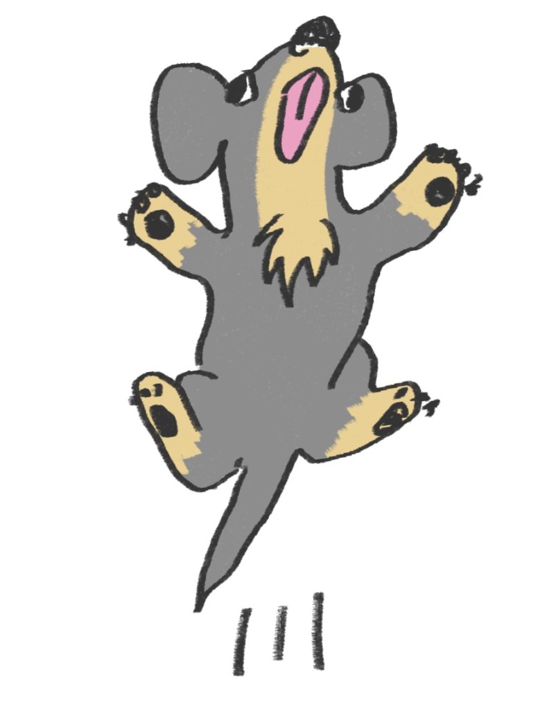 ガムを切り分けようと台所に持っていく私の周りを、子犬は不安と期待で跳び回っている。ガムを4等分に切り分け、ケージの中へ置いてやると、子犬は夢中になって食べ始めた。私はクッションに寄り掛かり、今起きたばかりの成犬に挨拶をし、成犬のしているオムツの具合を確かめた。やがておやつを食べ終えた子犬が、クッションに座る私の顔に全身で抱き着いてきた。